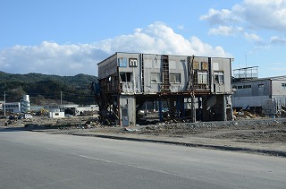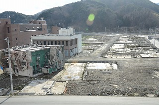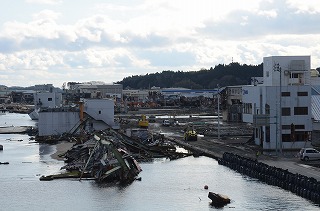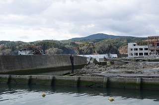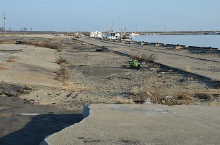 残っている建物はあるが、上階まで津波が通過している。民家はすべてなくなった。岸壁は、沈下して浸水している。