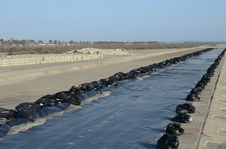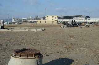 建物がなくなり、仙台空港のビルや海岸の仮堤防が見えるようになった。